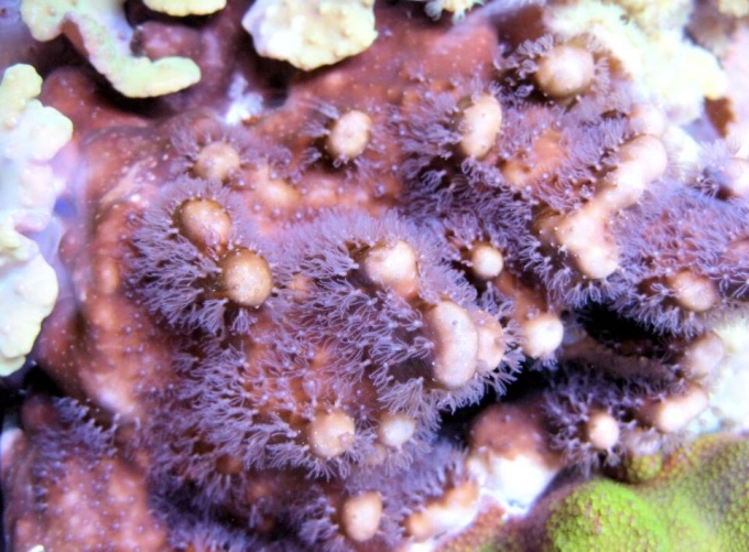 Diese Koralle gilt allgemein als sogenannter Spurenelementanzeiger: Sind die weißen Polypen sichtbar, ist alles ok !