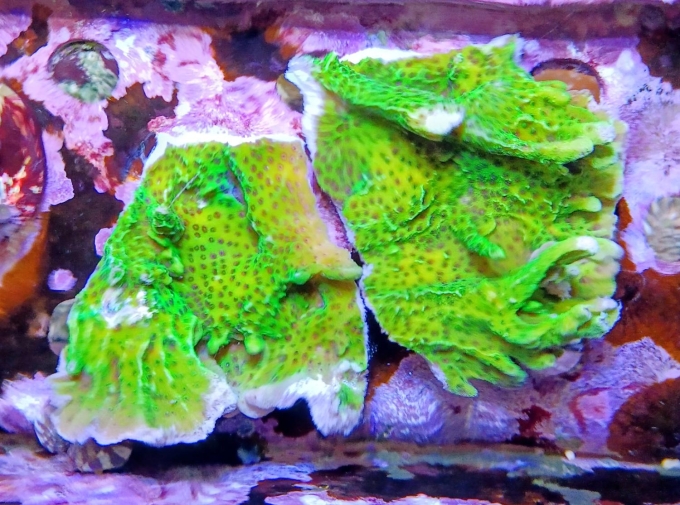 Gebe diese beiden großen Ableger von der grünen Montipora confusa ab.