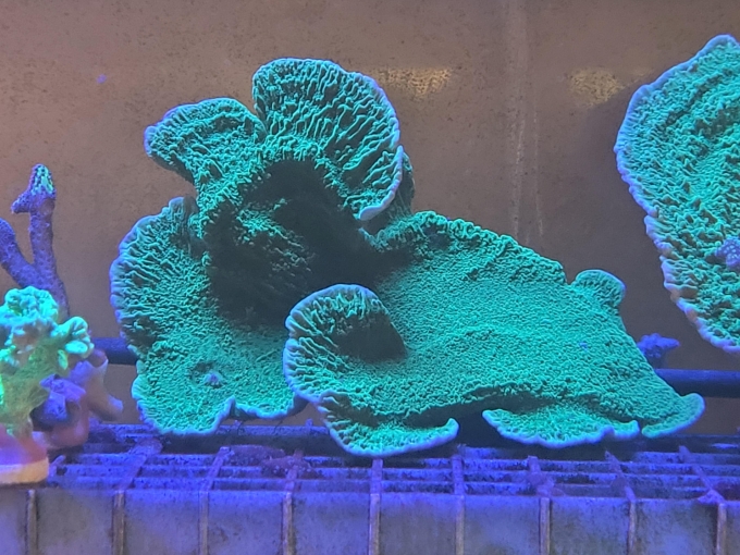 Meerwasser SPS Montipora Platte Grün Ableger.
