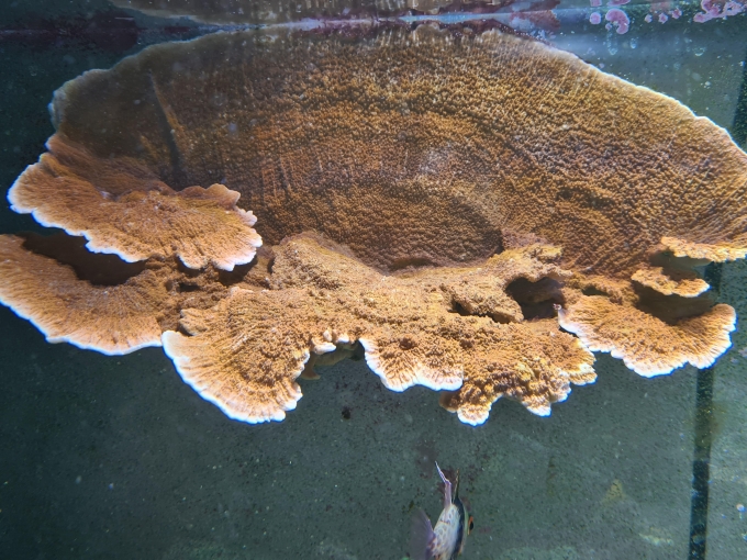 Auf dem ersten Bild ist meine noch heile Mutterkoralle zu sehen. Das zweite zeigt im Hintergrund die abgebrochenen Stücke.